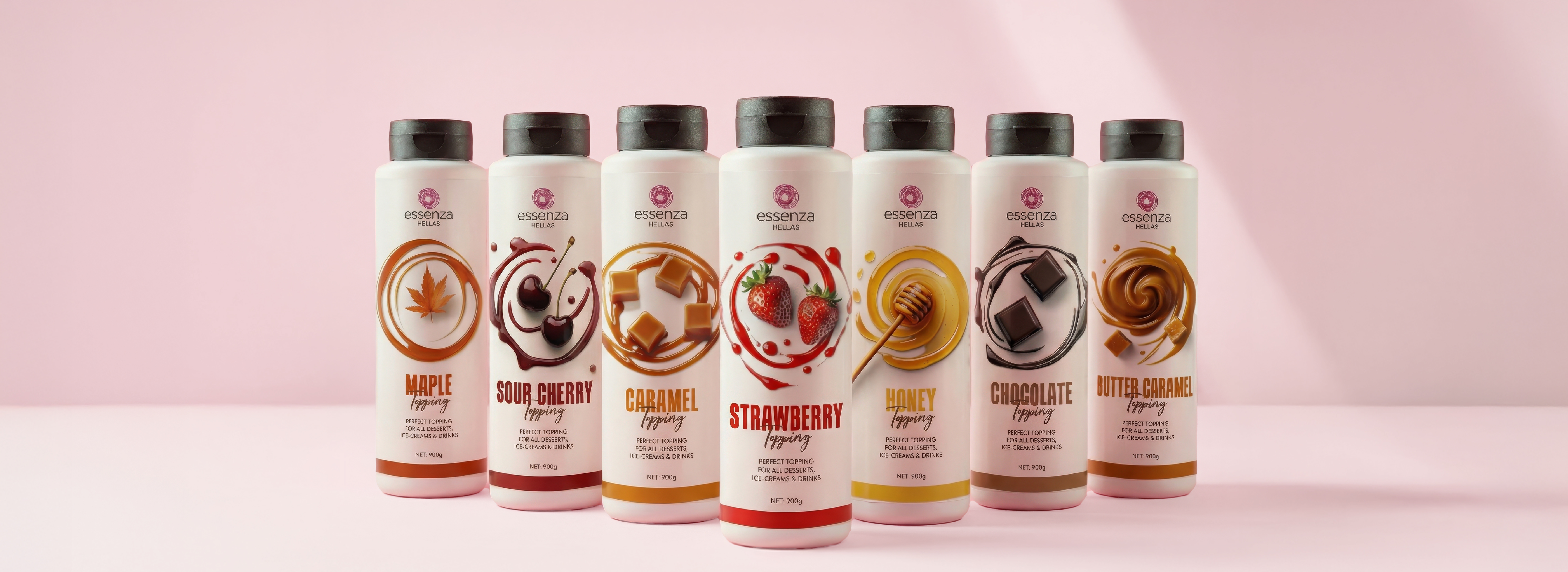 Το αποτέλεσμα είναι μια δυναμική και αναγνωρίσιμη σειρά που ενισχύει το αποτύπωμα της Essenza Hellas στον χώρο του food service και μετατρέπει τα Toppings σε εργαλείο δημιουργίας, έκφρασης και απόλαυσης.